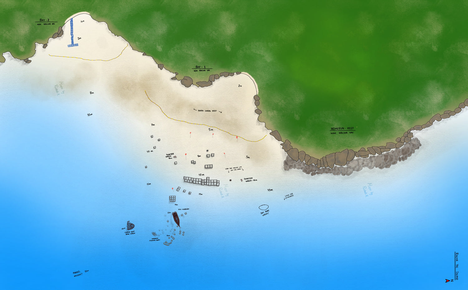 Dive Sites: Bungalow Bay, Siam Bay, Home Run Reef, Bay 1,2,3,4,5