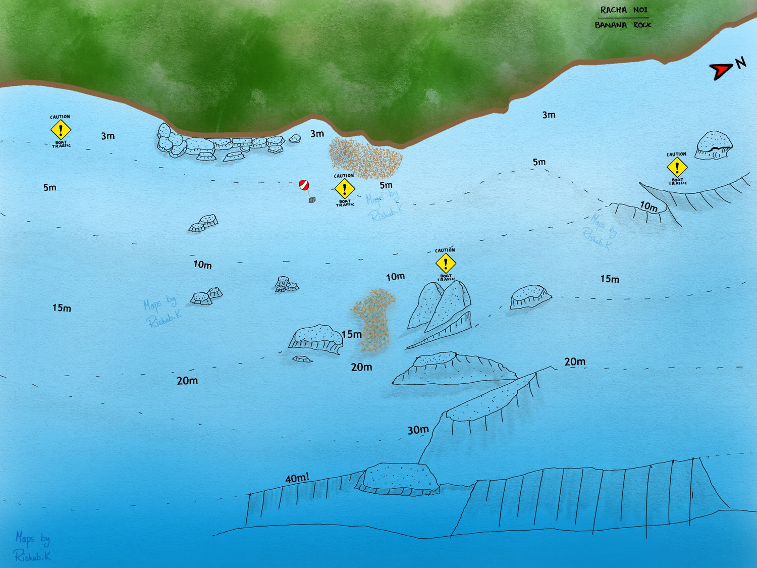 Located around the eastern coast of Racha Noi, the banana bay is truly a marvel to see with a majestic green landscape that shimmers with turquoise waters and white sand. With many mooring lines, the usual area where the dives start is at the clear shallow flat areas with usual depths of 3 to 10 meters.